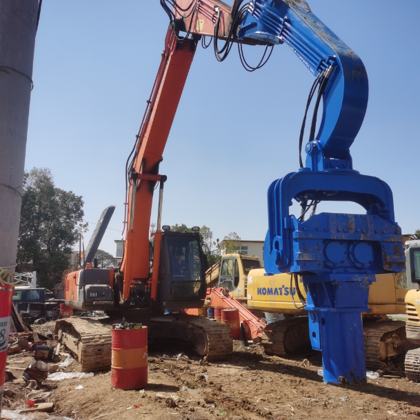 Pile Driver, op graafmachines gemonteerde pile driver, PV pile driver, zonne-pile driver, trillende pile driver, hydraulische pile hammer, hernieuwbare energie pile driver