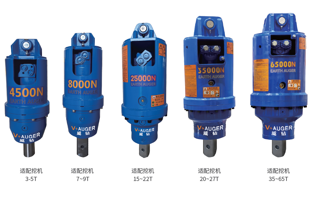 Een nieuw type boormachine met hoog koppel, geschikt voor graafmachines van 1,5 ton tot 65 ton.
